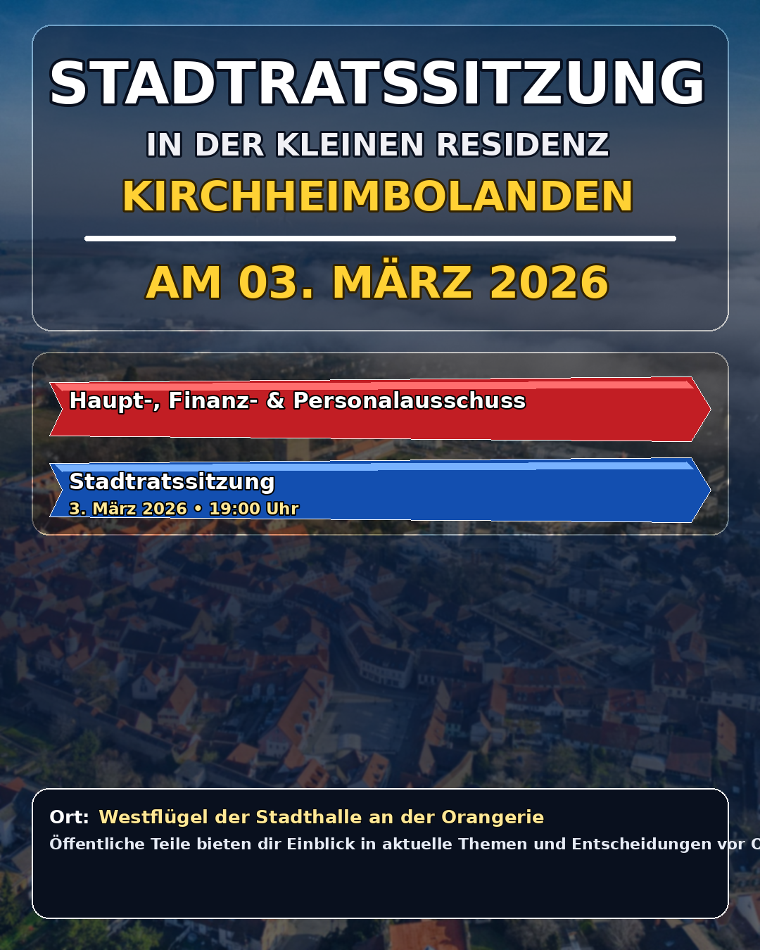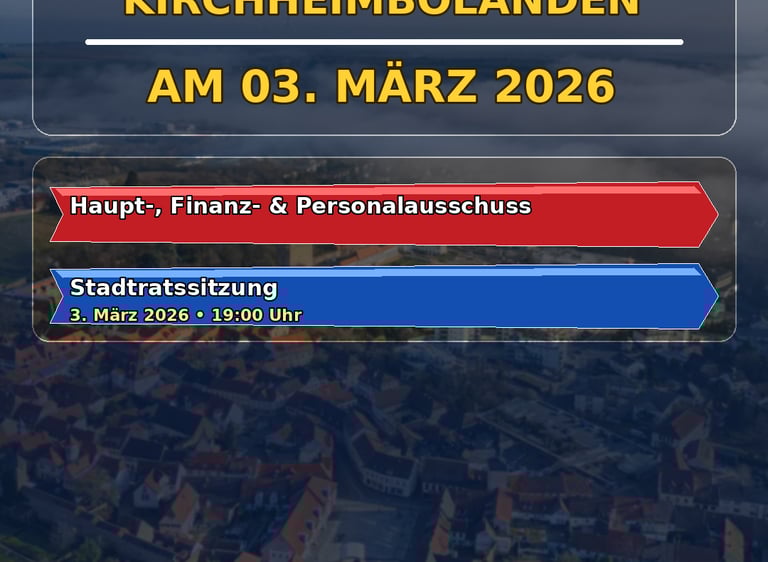 Am Dienstag, 03.03.2026, finden im Westflügel der Stadthalle an der Orangerie in Kirchheimbolanden gleich zwei wichtige Sitzungen statt.